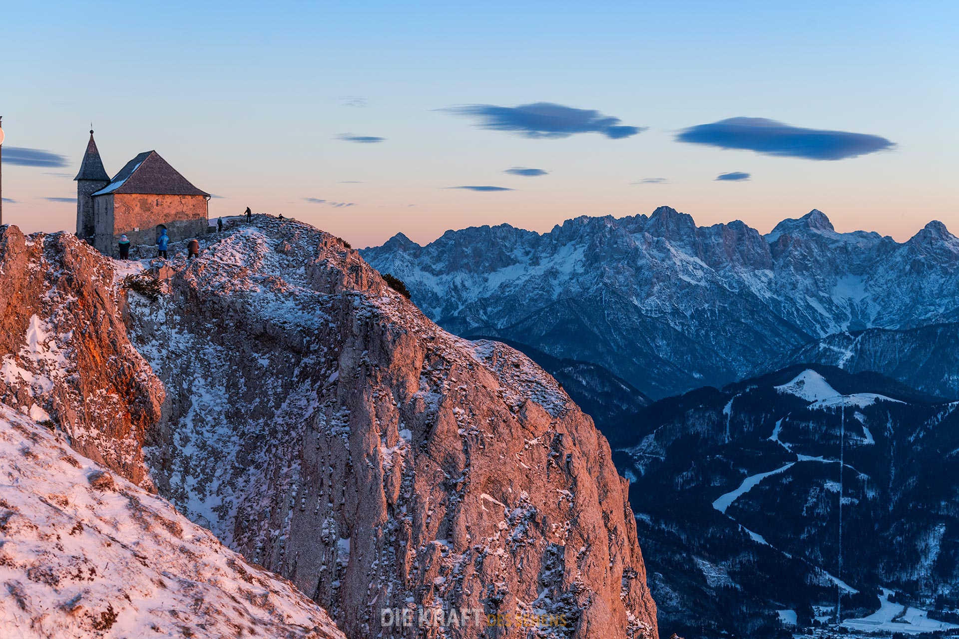 Neben dem gigantischen Panorama findet man noch einige weitere interessante Motive am Gipfel. Zum ersten die Deutsche Kapelle, Maria am Stein, deren Gründung ins 17. Jahrhundert zurückgeht. Sie steht direkt an der steil abfallenden Südwand des Dobrasch. Etwa 300 Meter entfernt steht die ebenfalls im 17 Jahrhundert errichtete „Windische Kapelle“ (Slowenische Kapelle). Sie ist dem Fest Mariä Himmelfahrt geweiht. Daneben befindet sich eine alte Stein-Ruine, die mit ihren Mauern das Gefühl eines „Lost Place“ vermittelt. Direkt neben dem Gipfelhaus steht der 120 Meter hohe Sendeturm des ORF. Ein durchaus interessanten Motiv, vor allem in der Nacht. Die Nähe zum Turm verschafft dem Dobratsch Gipfelhaus die Möglichkeit Strom und Internet zu besitzen.